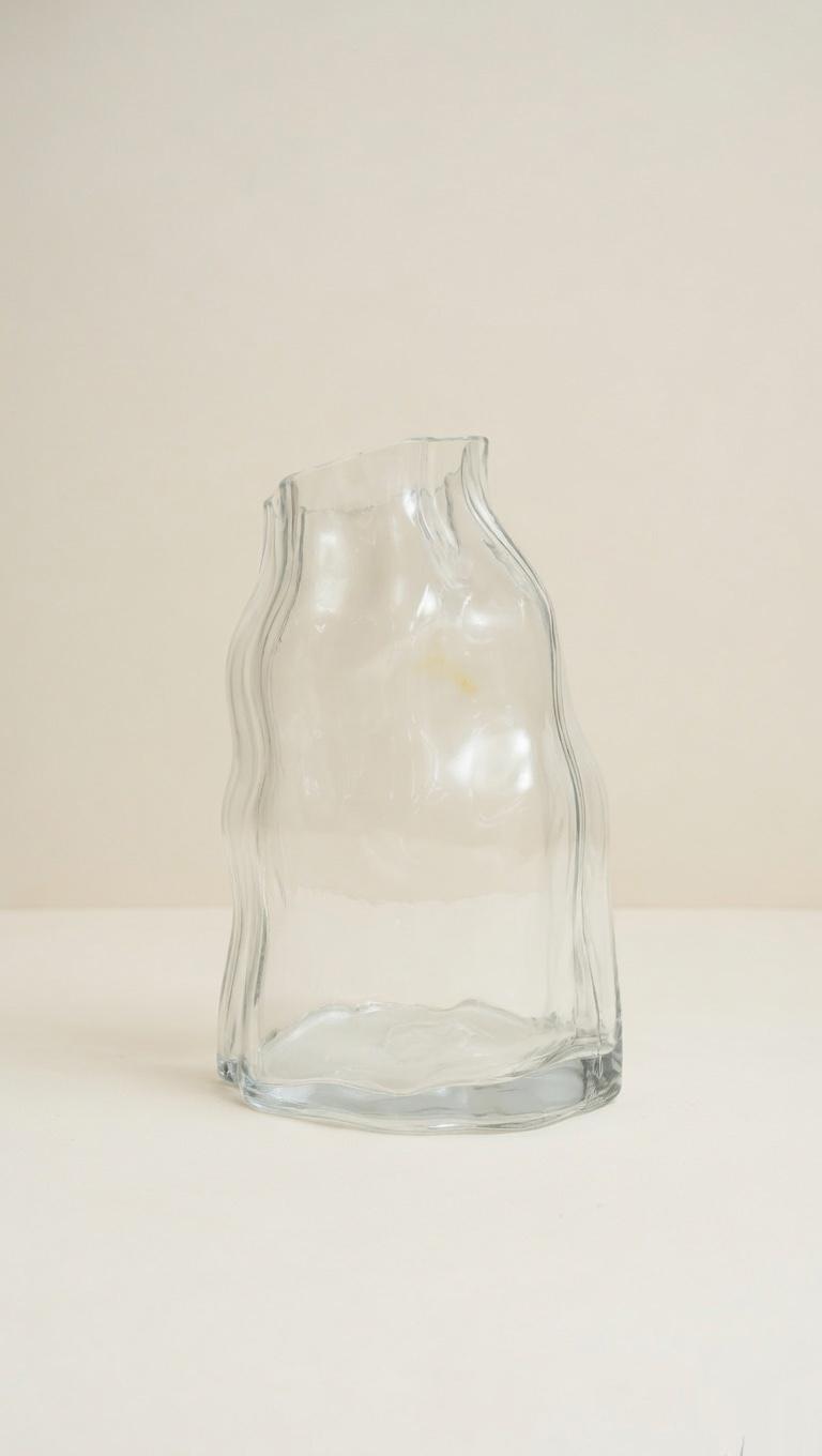 Organic Wavy Clear Glass Vase - Sculptural Design