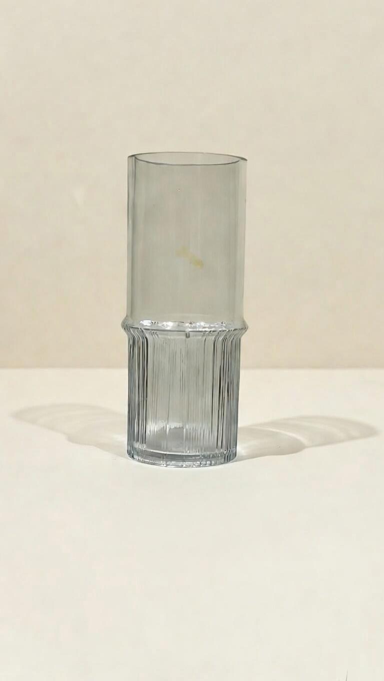 Elevate your home décor with this elegant ribbed glass vase. Featuring a sleek cylindrical shape with a textured ribbed lower half, this modern glass vase adds a sophisticated touch to any space.