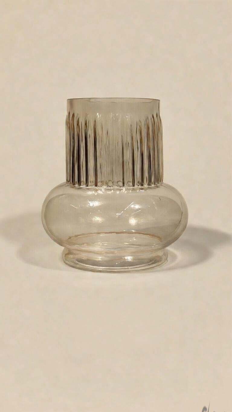 Elegant smoky grey glass vase featuring a ribbed upper section and a smooth, rounded bubble base. This modern yet timeless piece adds a sophisticated touch to any home, living room, or office space. Perfect for fresh flowers, dried arrangements, or as a standalone decorative accent.