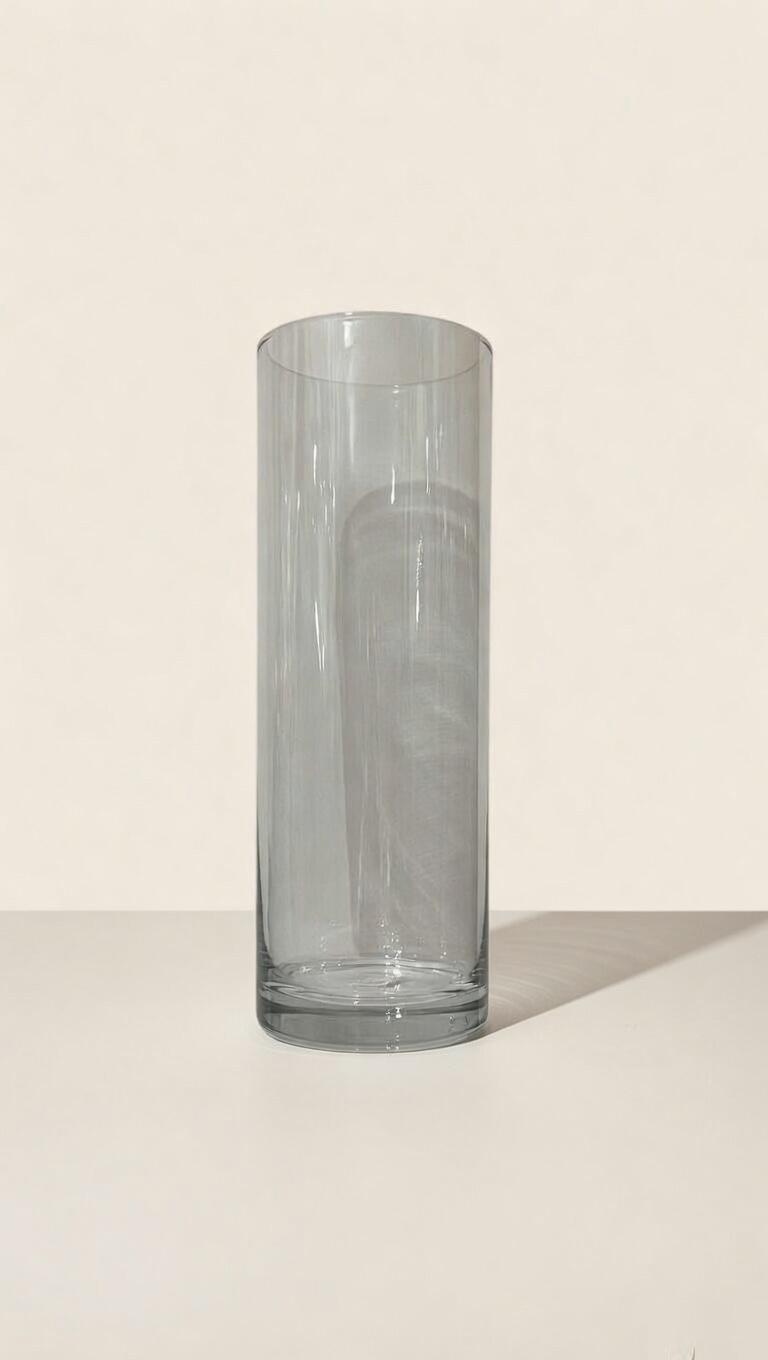 Elegant tall cylindrical glass vase with a sleek, straight-sided design. Perfect for long-stemmed flowers, dried arrangements, or as a standalone decorative piece.