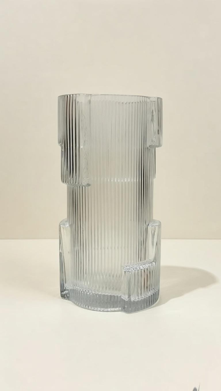 Add contemporary elegance to your space with this striking tall ribbed glass vase. Featuring a unique stacked, stepped design with vertical ribbed texture throughout, this clear glass piece creates beautiful light play and adds architectural interest to any room.
